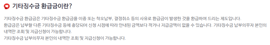**기타징수금이라는 것이 있어서 이것도 이중이나 과하게 걷어간 것을 돌려준다는 내용입니다.**
