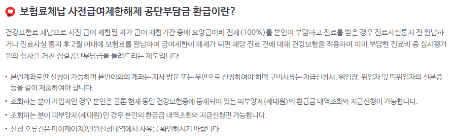 **의료보험이 정지되었다가 풀리는 시점에 본인이 의료비를 전부 부담하였다면 공단이 계산해서 돌려준다는 내용입니다.**