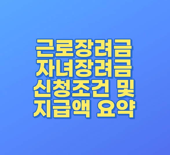 근로장려금 자녀장려금 신청조건 및 지급액 요약