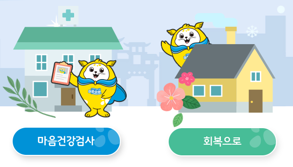 마음건강검사를 선택하세요. 회복으로는 검사 후 나의 상태를 알고 나서 선택해요.