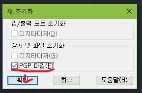 4. acad.pgp 파일을 저장하고 캐드 명령줄에 REINIT 명령을 입력하고 엔터 치고 재초기화 창이 뜨면 PGP 파일 선택하고 확인 클릭하세요.