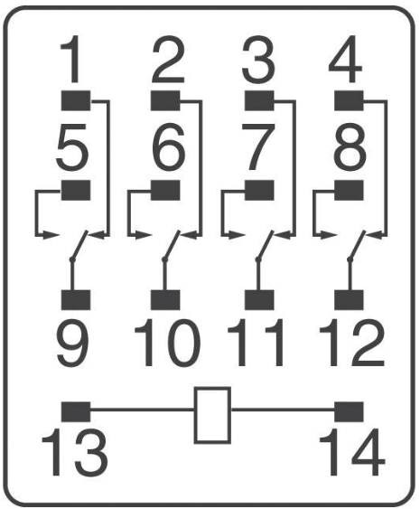 하나의 C와 A접점, B접점이 있는 것을 C-FORM이라고 합니다. 이것을 C접점이라고도 하는데 위의 릴레이는 4개의 C접점이 있다고 표현할 수 있습니다.