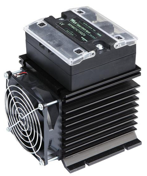 - SSR은 용량이 커질수록 발열이 심합니다. 따라서 용량이 큰 SSR의 경우 방열판이 일체형으로 붙어 있고, 쿨링팬이 같이 붙어 있게 됩니다.
